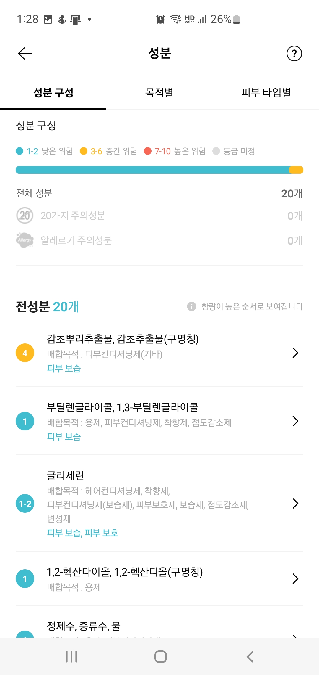 화해어플의 가장 큰 장점은 성분 분석 기능입니다. 화장품이나 스킨케어 제품을 검색하면 성분 하나하나의 안전도를 확인할 수 있습니다. 특히 알레르기 유발 가능 성분이나 유해 성분에 민감한 사용자를 위해 명확한 정보를 제공합니다.
